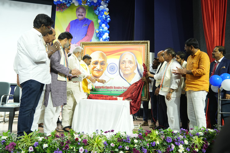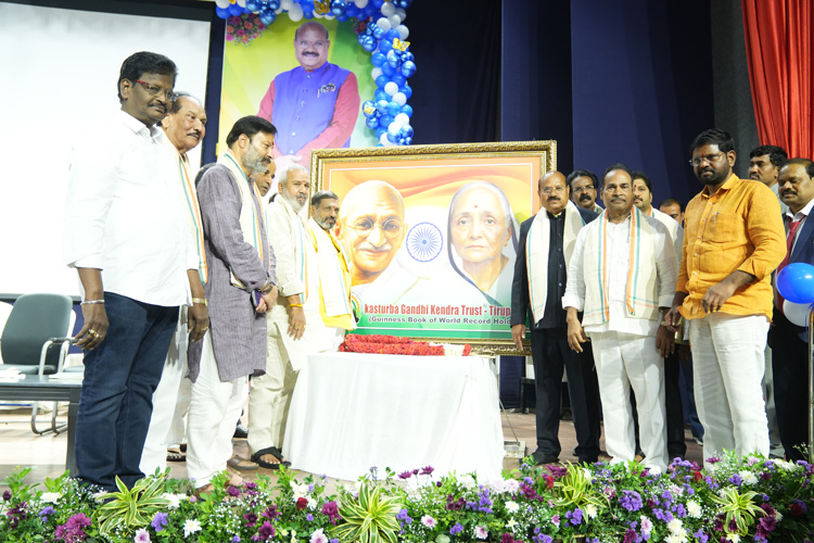Chairman Garlanded to Kasturba Gandi 155th Birthday Portrait