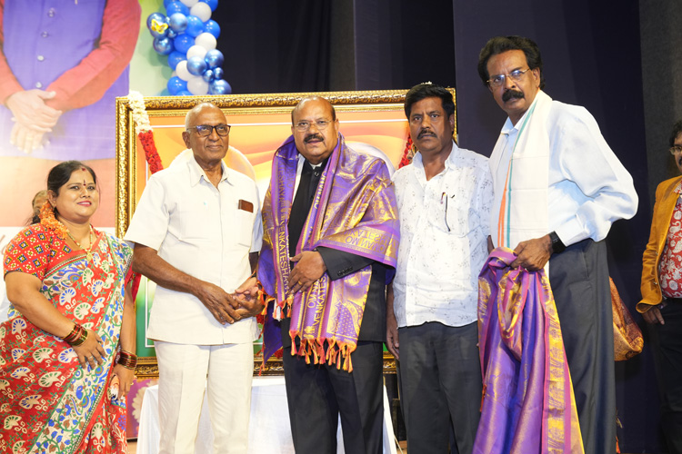 Trust Board Chairman DR PC Rayulu Garu Felicitated Two workers and Distribution of cloths to 200 members at Labour day celebrations 2023
